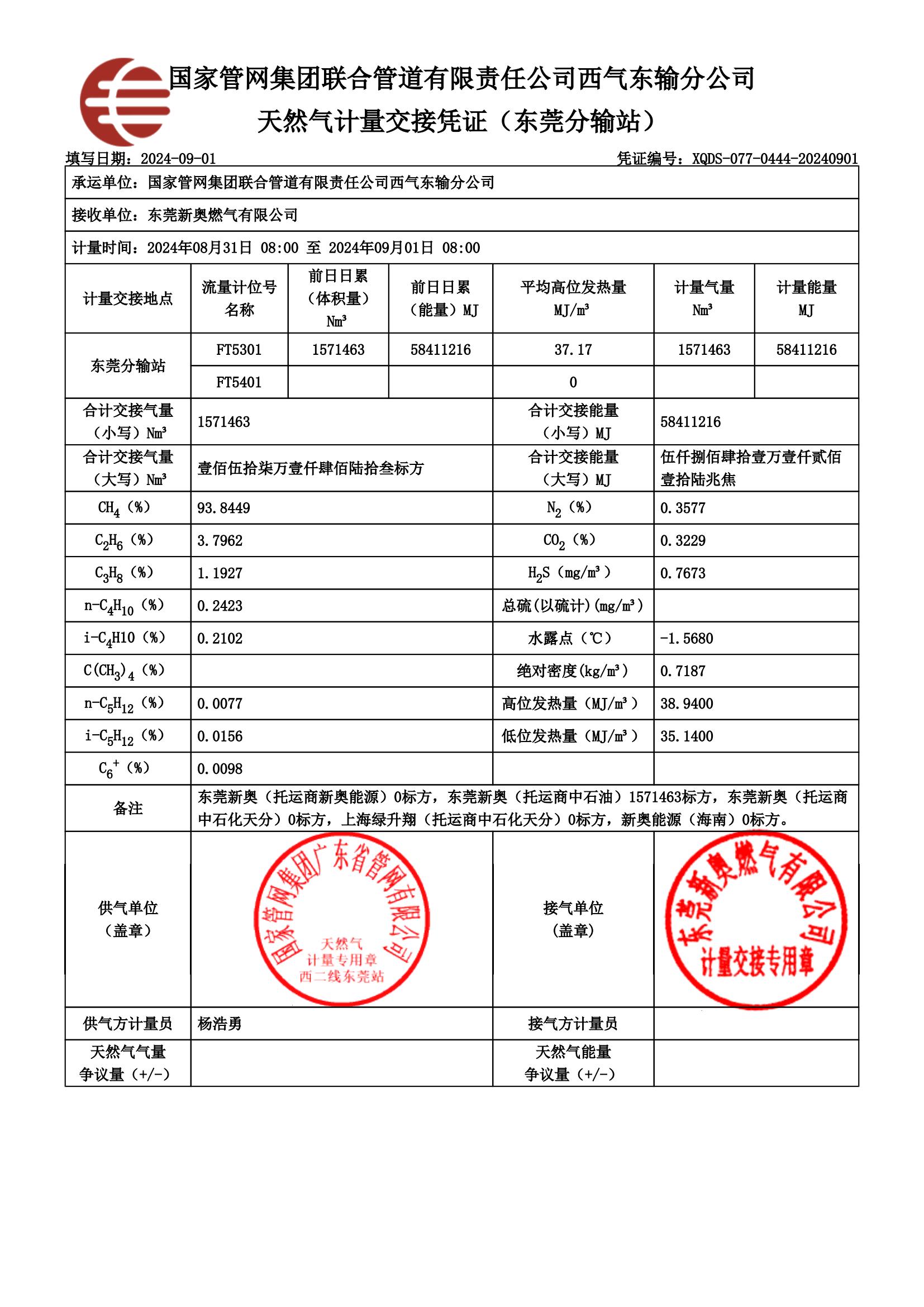 東莞新奧燃氣2024年9月份供氣質量檢查報告公示